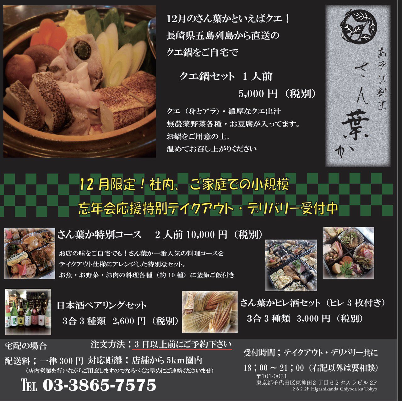 あそび割烹 さん葉か 早速本日クエ鍋セット テイクアウト のご注文いただきました Facebook