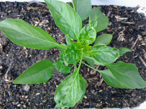 しし唐の若葉が縮れる ベランダで ちょこっと農業気分