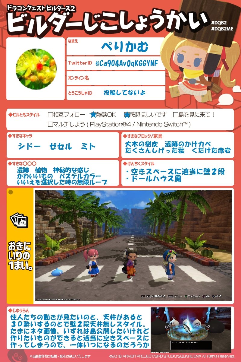 ぺりかむ Dqb2 On Twitter 自己紹介シート作ってみた こんな素敵なファンキット作ってくれた公式さんありがとう Dqb2 Dqb2me