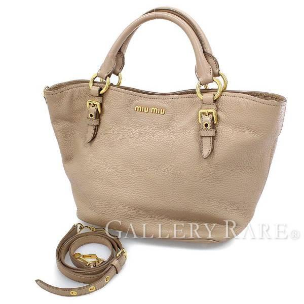 ミュウミュウ トートバッグ Vitello Phenix レザー ベージュ アウトレット品 5be886 Miu Miu バッグ 2wayショルダー