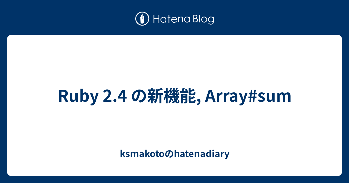 Ruby 2 4 の新機能 Array Sum Ksmakotoのhatenadiary